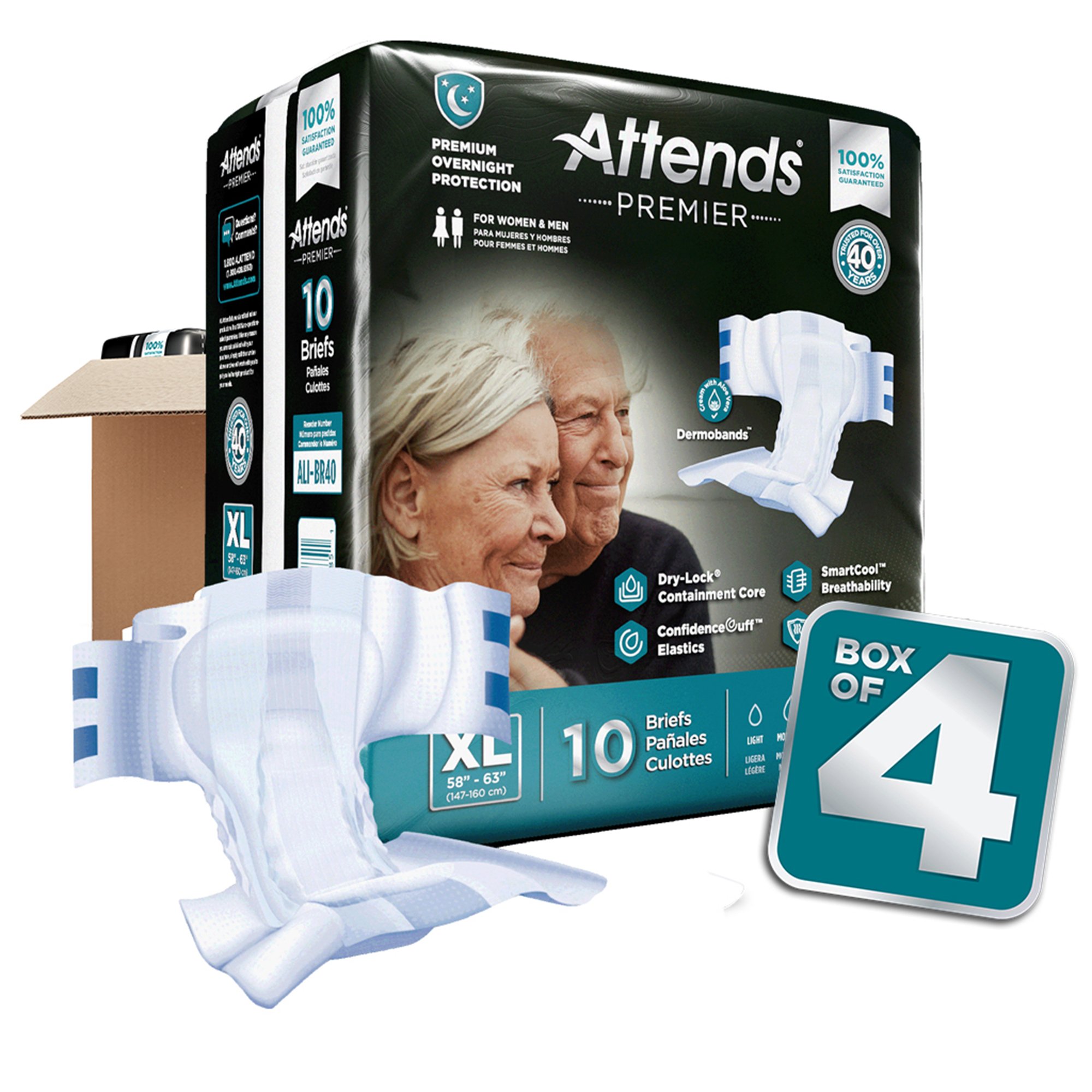 The Attends Premier X-Large disposable incontinence brief offers exceptional overnight protection designed for maximum comfort and confidence. Crafted with a high-rise, full-fit design, this brief provides comprehensive coverage and secure fit for waist sizes ranging from 58 to 63 inches. The ultra-plush construction ensures a soft feel against the skin, making it suitable for all-day wear. Its premium materials are engineered to deliver reliable absorption, locking in liquids quickly to keep users dry and comfortable throughout the night or during extended periods of use. The brief’s advanced leak protection helps promote a sense of dignity and security, allowing users to go about their day with confidence. The 100% breathability of the fabric enhances comfort by reducing heat and moisture buildup, which can promote healthier skin and prevent irritation. Designed for heavy absorbency needs, this brief is Attends’ most absorbent option, making it ideal for overnight use or extended wear situations. Whether for managing incontinence or other personal needs, the Attends Premier X-Large brief combines functionality with comfort, ensuring users can maintain an active lifestyle without concern.