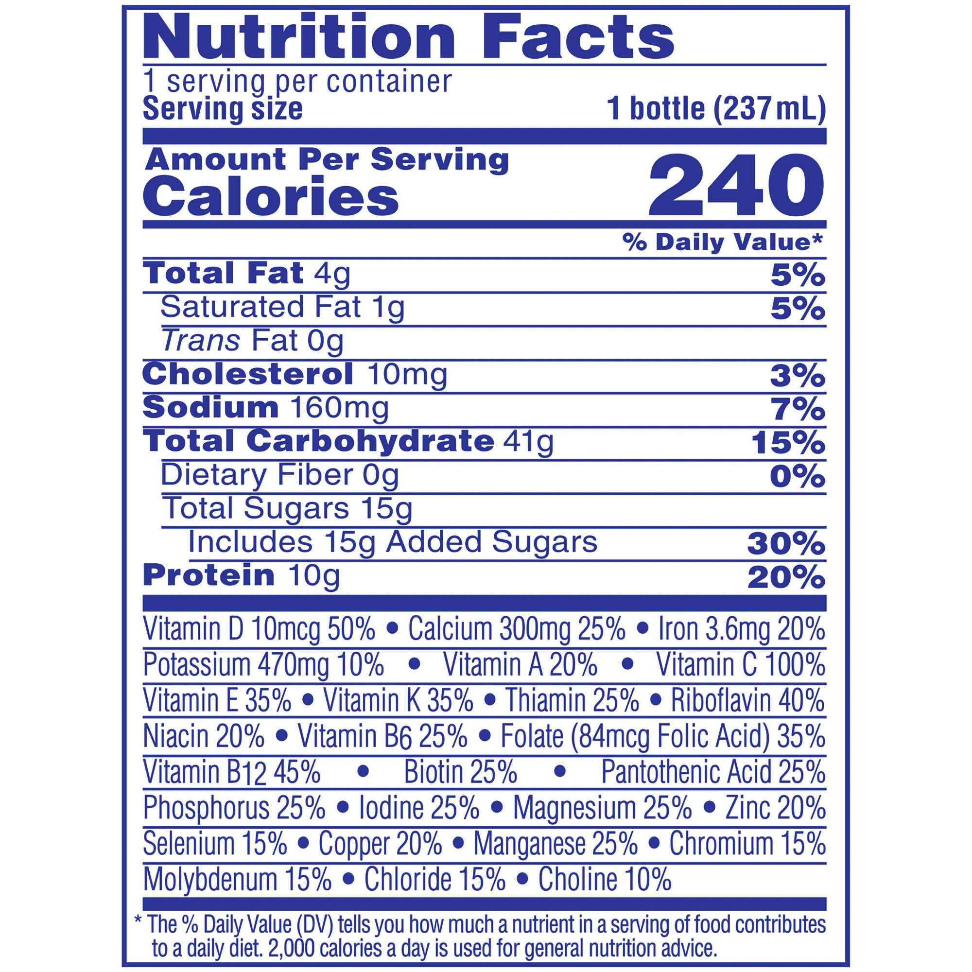 • Provides 240 calories per 8 oz serving for energy support