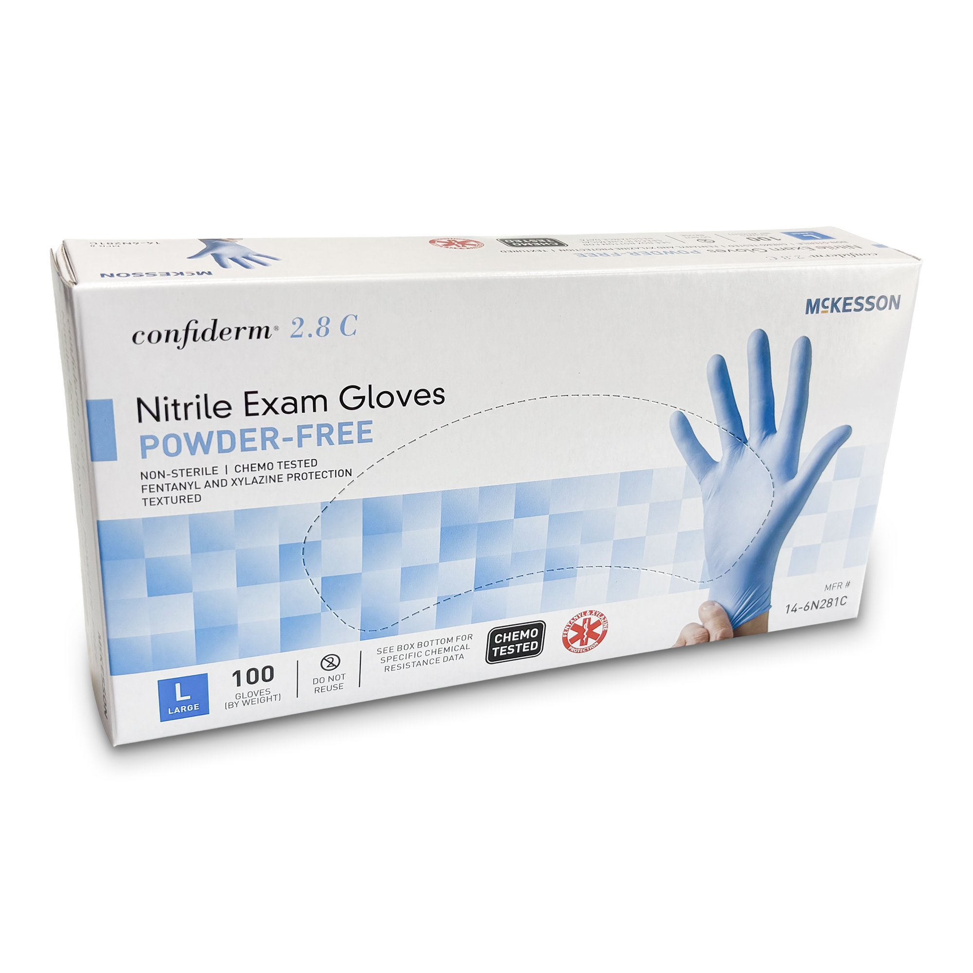 Exam Glove McKesson Confiderm® 2.8 C Large 100 per Box NonSterile Nitrile Standard Cuff Length Textured Fingertips Ocean Blue Chemo Tested / Fentanyl Tested