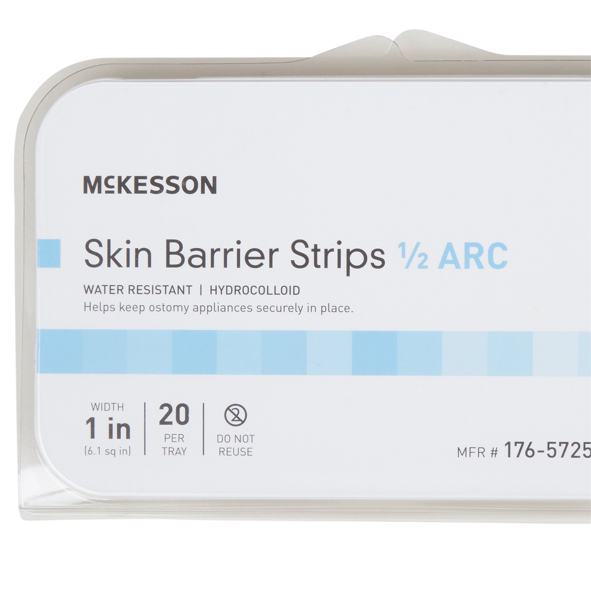 The McKesson Skin Barrier Half-Arc Strip is designed to provide reliable protection and secure sealing around the stoma area. Crafted with a water-resistant surface, this barrier features a gentle, highly absorbent hydrocolloid adhesive that effectively soaks up exudate, allowing users to bathe, swim, or engage in water activities without worry. The pre-cut, pre-shaped strip with high-tack adhesion ensures easy application and a long-lasting seal, reducing the need for frequent replacements and minimizing skin irritation. Its curved, ½-arc design is specifically shaped to fit comfortably around the flange, helping to picture-frame the pouching system for a discreet and secure fit. The strip can be applied directly on the skin as a barrier before the pouch system or over the pouch to enhance stability, making it versatile for various user needs. Gentle removal reduces trauma to the peristomal skin, which is especially beneficial for individuals with tape allergies or sensitive skin. For optimal adhesion and protection, it is recommended to apply McKesson skin barrier film prior to the barrier strip, ensuring a secure fit that helps prevent leaks and skin irritation. This product is latex-free, ensuring safety for users with latex sensitivities, and is suitable for daily use in ostomy care routines. Designed and manufactured in the United States, the McKesson Skin Barrier Half-Arc Strip is an essential accessory for maintaining skin integrity and ensuring pouch security in ostomy management. The package includes 20 strips, providing reliable coverage for routine needs, with the flexibility to reorder as necessary. Easy to integrate into existing ostomy supplies, this barrier strip offers a dependable solution for patients seeking comfort, security, and skin protection during their daily activities.