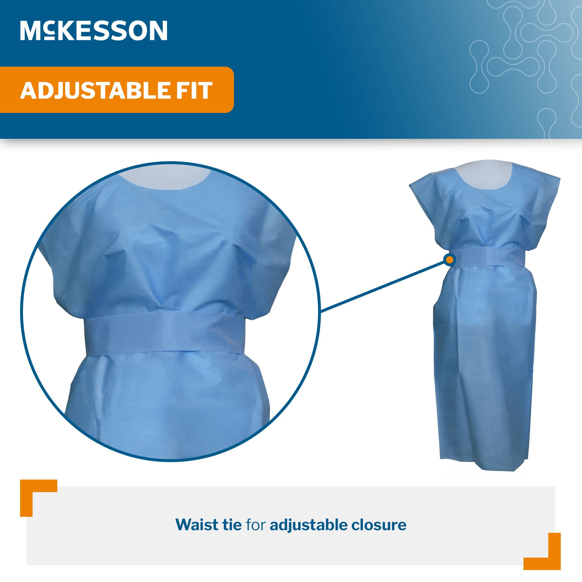 Ensure reliable patient coverage with the McKesson SMS Fluid Resistant Exam Gown designed for modern healthcare settings. Crafted from lightweight, breathable SMS material, this gown provides a fluid-resistant barrier to support infection control while maintaining patient comfort during exams and procedures. Its open back style and absence of cuffs facilitate ease of movement and accessibility for healthcare providers. The gown features an adjustable waist tie for a secure, customizable fit, promoting modesty without sacrificing practicality. Suitable for a variety of clinical applications, this disposable gown is ideal for adult patients requiring single-use protective apparel. The generous 30 x 45 inch size ensures ample coverage, enhancing patient dignity and confidence during examinations. Each case includes 50 gowns, making it a cost-effective solution for busy healthcare facilities. The gowns are lightweight yet durable, supporting efficient infection control practices while delivering consistent performance in demanding environments. Designed with versatility in mind, these gowns are unisex and suitable for a broad range of clinical procedures, from routine exams to more involved medical interventions. McKesson’s commitment to quality ensures these gowns meet the needs of healthcare professionals and patients alike, providing a reliable barrier and a comfortable fit for every use.