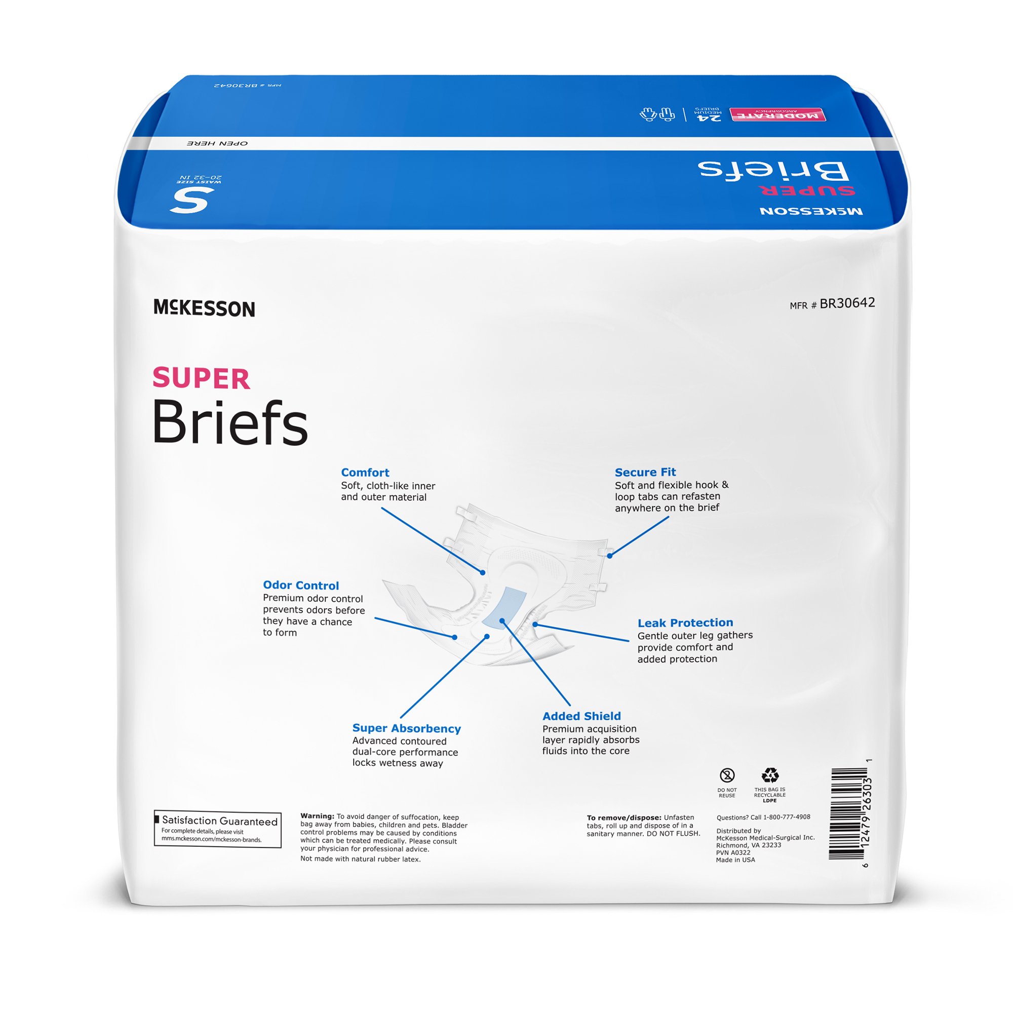 The McKesson Unisex Adult Incontinence Brief in Small size is designed to provide reliable and discreet protection for individuals experiencing moderate incontinence. Crafted with a premium acquisition layer, this brief quickly absorbs fluids to keep the skin dry and comfortable, reducing the risk of skin irritation and discomfort. The advanced dual-core technology effectively locks away wetness, offering added security and peace of mind throughout the day. Its soft, cloth-like stretch waistband ensures a secure yet comfortable fit, allowing users to move freely without restriction. The briefs are easy to put on and take off, mimicking the convenience of regular underwear, which makes daily use straightforward and hassle-free. Tear-away sides facilitate quick and easy removal, especially helpful during changing or in urgent situations. Equipped with premium odor control technology, these briefs prevent odors from forming, maintaining freshness and confidence for the wearer. Ideal for moderate incontinence, this product offers a combination of comfort, security, and discreet protection, suitable for daytime wear or extended use. The small size comfortably fits waist measurements from 20 to 34 inches, making it an excellent choice for individuals seeking a reliable incontinence solution that doesn’t compromise comfort or dignity. Whether used at home or on the go, these disposable briefs deliver consistent performance and ease of use for everyday needs.