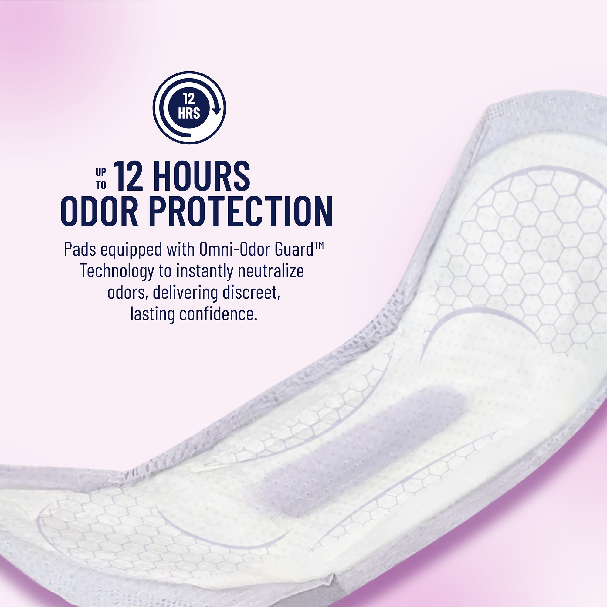 The Prevail® Daily Pads Moderate Bladder Control Pads provide discreet and reliable protection designed for adult females managing moderate bladder leakage. Crafted with a soft, cloth-like topsheet and a white, breathable backsheet, these pads offer a comfortable, natural feel while maintaining a discreet profile under clothing. The long length of approximately 12.5 inches ensures enhanced coverage and confidence throughout the day, making them suitable for various activity levels and lifestyles. Engineered with MaxSorb Gel Technology, these pads quickly lock in wetness, helping users stay dry and comfortable. The dual-action Omni-Odor Guard system actively prevents odors before they can develop, providing an extra layer of assurance and freshness. These pads are individually wrapped for convenience and hygienic use, making them ideal for on-the-go applications. The polymer core absorbs moderate amounts of liquid efficiently, and the one-size-fits-most design ensures a secure fit for most adult women. Made in the United States, these disposable pads are latex-free, allergy-friendly, and FSA eligible, aligning with healthcare standards and user safety expectations. Whether used daily or during special occasions, Prevail’s moderate bladder control pads offer reliable performance, comfort, and confidence for adult women seeking discreet incontinence management solutions.