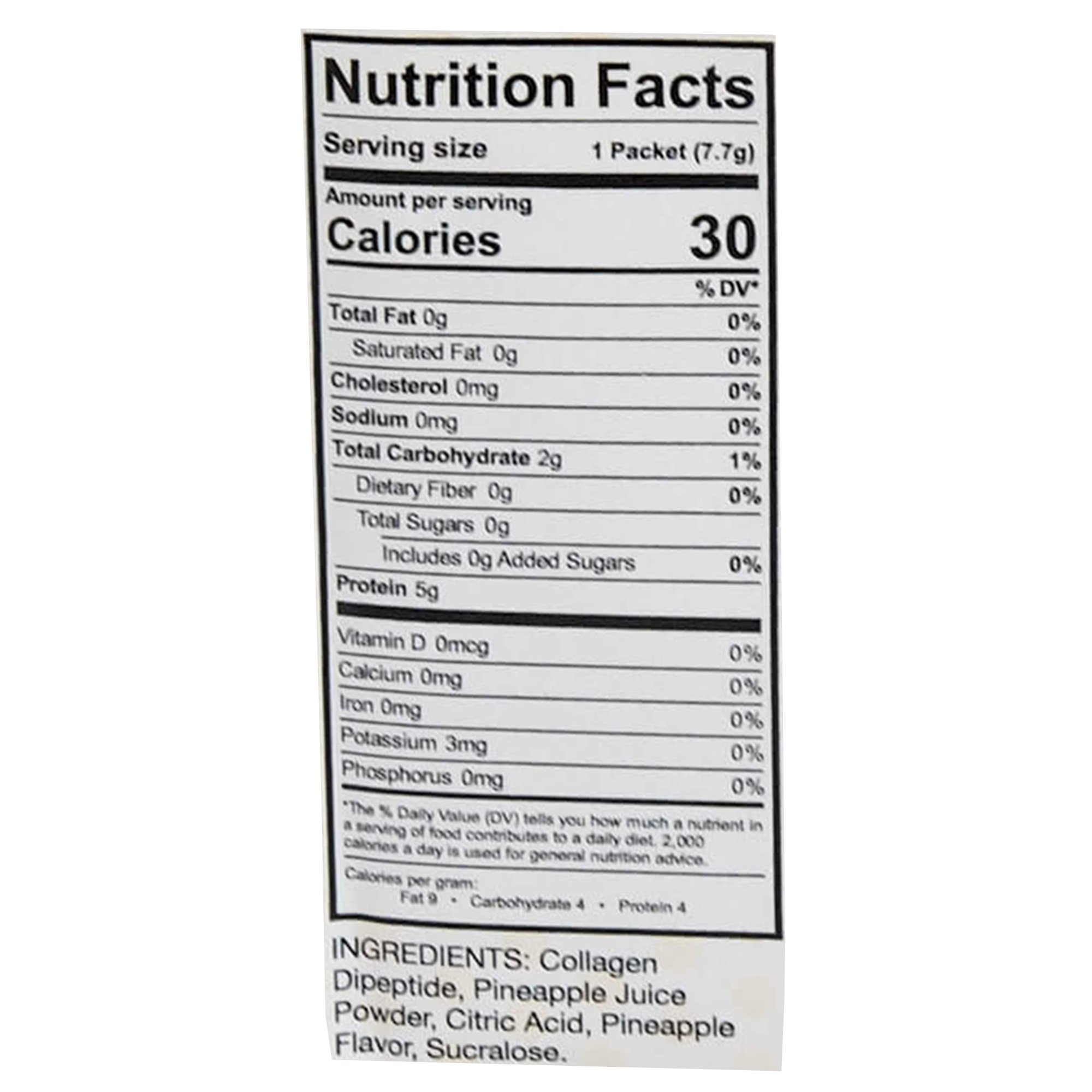 | ingredients | Collagen Dipeptide, Pineapple Juice Powder, Citric Acid, Pineapple Flavor, Sucralose |
