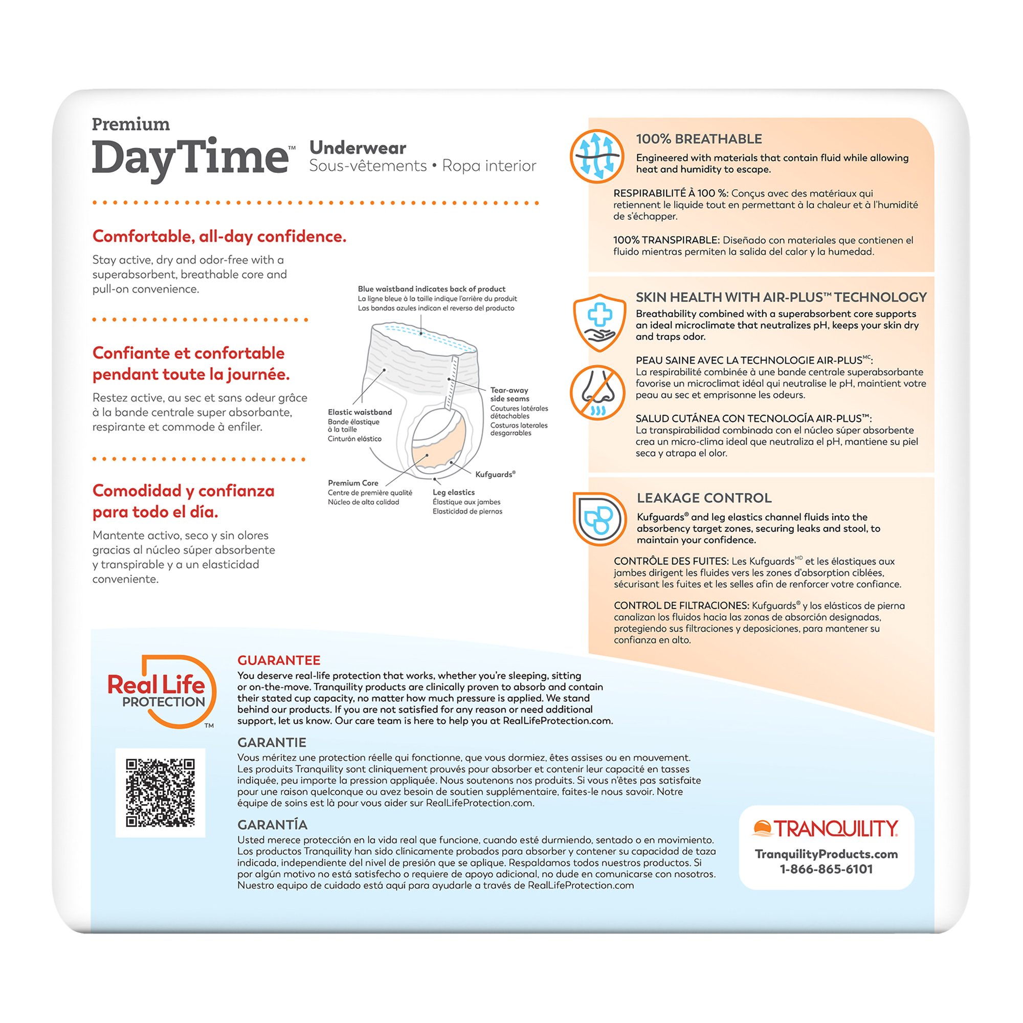 * All-day protection with Air-Plus Technology: 100% breathability for cool comfort and quiet, slim form-fitting materials that move with you for leak-free security