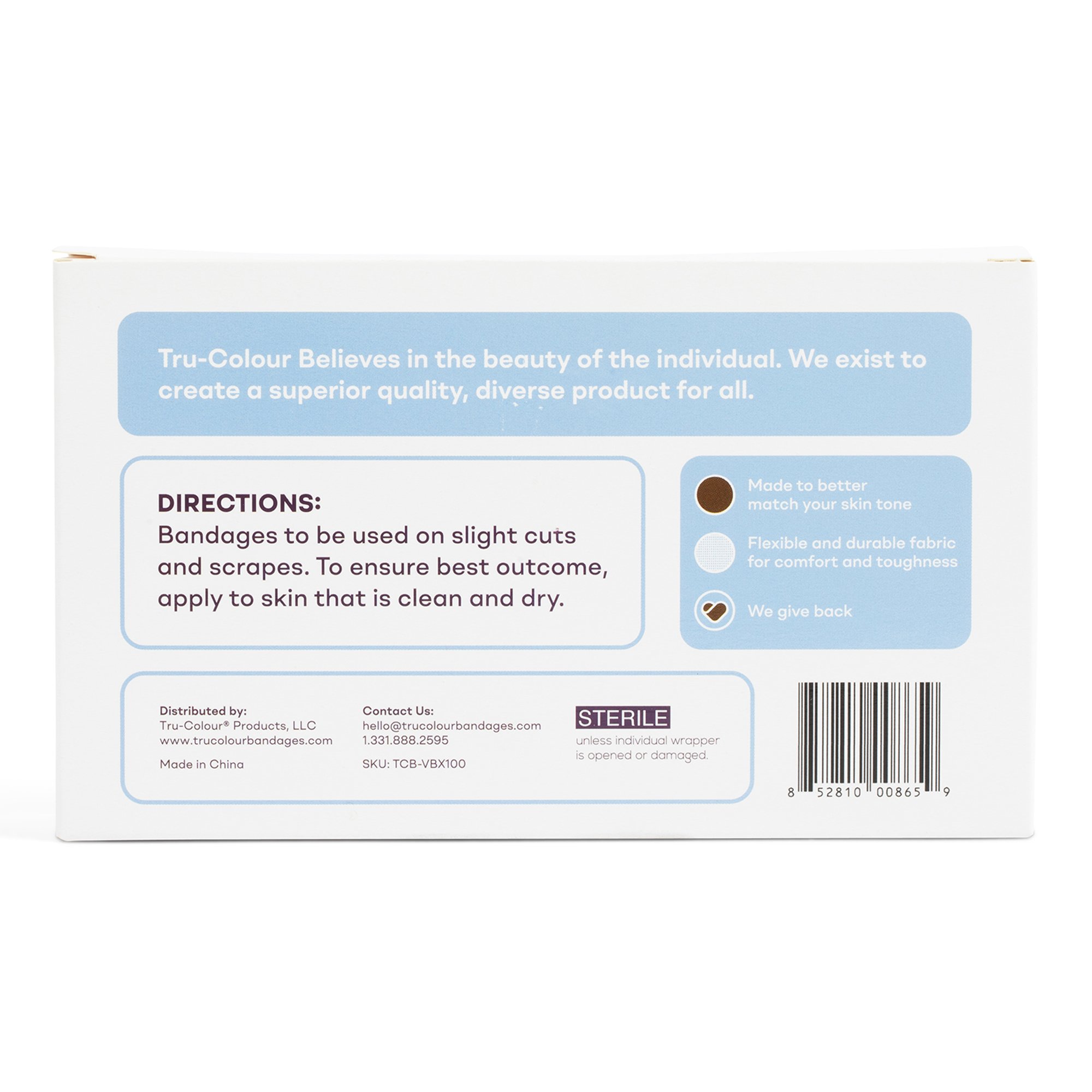 These Tru-Colour? adhesive strip bandages are designed to blend seamlessly with a variety of skin tones, including beige, olive, brown, and dark brown. Each bandage measures approximately 1 inch by 3 inches and is made from flexible fabric that allows for increased movement and comfort during wear. Ideal for minor cuts and abrasions, these sterile, individually wrapped bandages are suitable for use in homes, clinics, schools, camps, and kitchens, making them a versatile addition to any first aid kit. The fabric material provides durability and flexibility, ensuring the bandages stay securely in place while accommodating natural body movements. Their skin-tone shades help to conceal minor injuries, offering a discreet and professional appearance. The product is manufactured in China and is FSA eligible, making it suitable for medical and insurance purposes. These bandages are part of the wound care category, specifically designed for general wound care needs, and are available in a convenient bulk pack of 100. They are also returnable and ready for immediate use, providing reliable wound management for various environments.