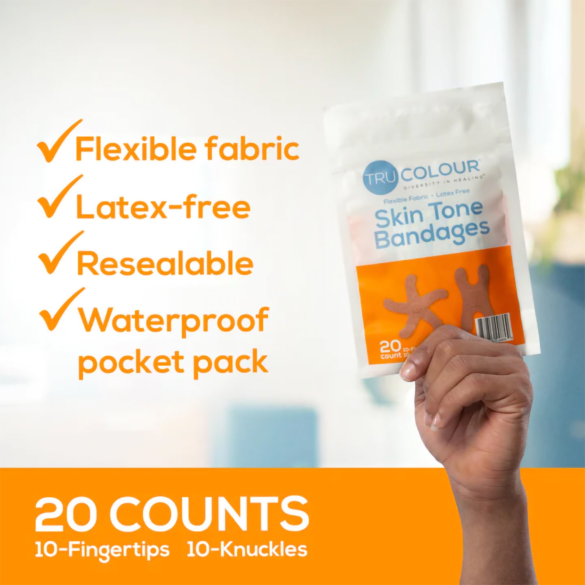 These TruColour? brown adhesive bandages are designed to blend seamlessly with skin tones close to tea color, providing discreet wound coverage. Each package contains 20 assorted bandages, including 10 fingertip and 10 knuckle shapes, making them versatile for various minor injuries. Ideal for use at home, in classrooms, clinics, summer camps, sporting events, and more, these bandages offer reliable protection where it counts.