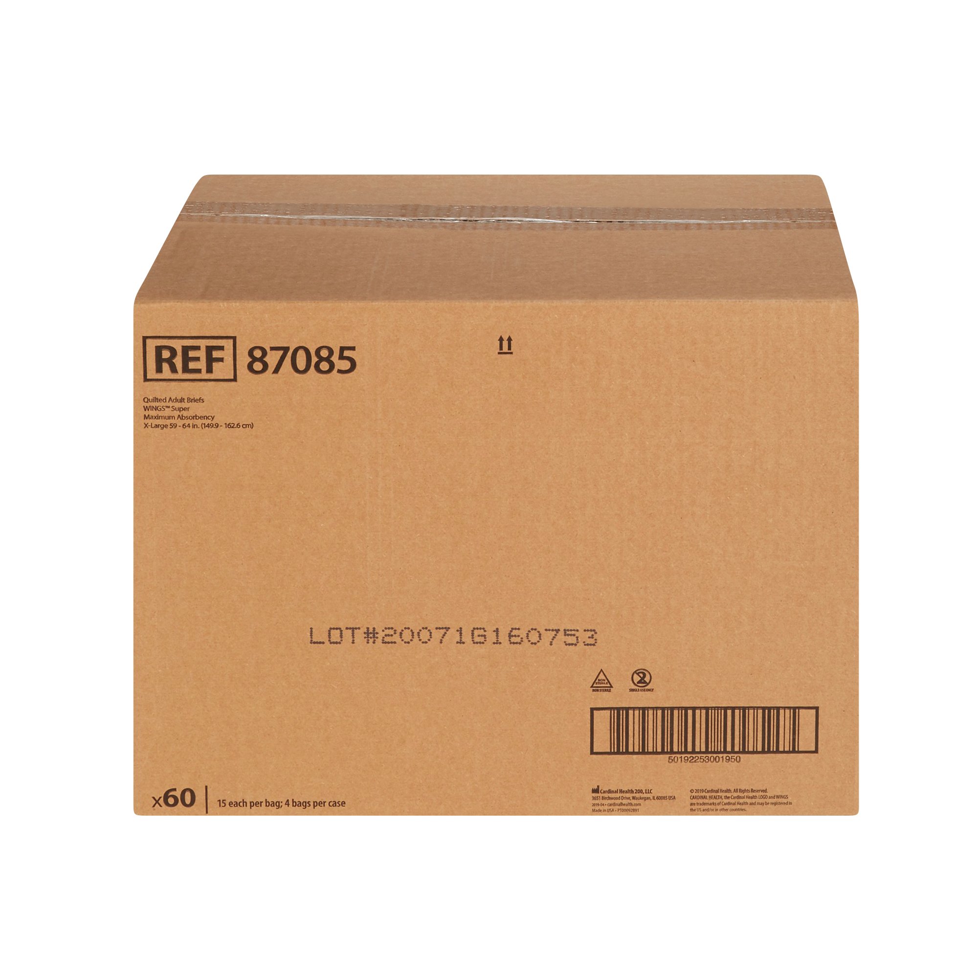 The Super Quilted Unisex Adult Incontinence Brief, Part No. 87085, is designed for maximum protection and comfort. This X-Large disposable brief features a high-density core that is specially formed to provide targeted protection where it*s needed most, effectively managing heavy incontinence. The super absorbent core is engineered to quickly lock in fluids and neutralize unpleasant odors, ensuring freshness and confidence throughout the day. The cloth-like backsheet is ultrasonically bonded to create a quilted look and feel, offering a discreet and quiet solution that maintains dignity for the wearer. Sturdy refastenable tabs provide a secure fit, allowing for easy adjustments and ensuring the brief stays in place during active use. This product combines advanced construction with comfort, making it a reliable choice for individuals requiring heavy absorbency and discreet protection.